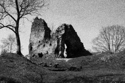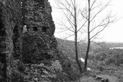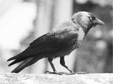 Kousek za Nezabudicemi jsem musel zastavit a pokusit se o nemožné – vyfotit úsek stromů napadených zřejmě nějakým lišejníkem, protože na tu dálku vypadaly jako shromáždění šedivých starců. Nešlo ani tak o ty stromy jako o ptáky, kteří trůnili na koncích vrcholových větví. Byli celí černí s bílými skvrnami – snad na hrudi nebo na hlavě a budili posvátný respekt. Možná to byly obyčejné vrány nebo snad i kavky. Na tu dálku to nebylo možné poznat. Vítr v tom místě se podivně utišil a my jsme jeho pohyb pouze tušili o něco výš nad strání, pod kterou jsme zastavili.